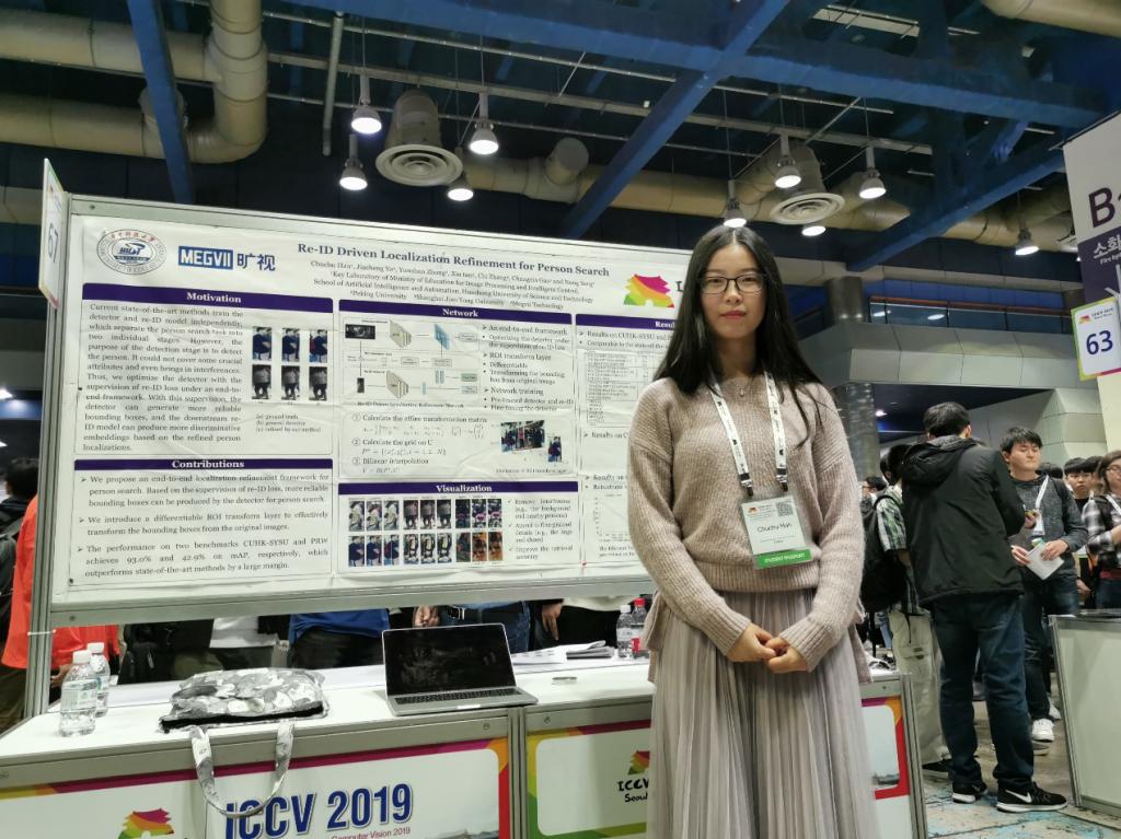 桑农教授指导的研究生韩楚楚等同学在大会发表了“Re-ID Driven Localization Refinement for Person Search”论文,该论文的研究工作在国家自然科学基金面上项目的资助下,构建了一个端到端的行人搜索框架。当前行人搜索的最佳方法是单独训练检测模型和重识别模型,但问题在于输出的检测框可能并非后续行人重识别任务所需的最优区域。因此本研究提出了一个行人重识别驱动的定位修正框架,通过设计一个可导模块,使检测器可以在重识别损失的监督下进行优化,从而修正检测出的检测框,使其更加有利于重识别任务。实验结果表明,该行人搜索方法在常用数据集CUHK-SYSU上性能大幅超越其它方法,并达到目前最佳性能。