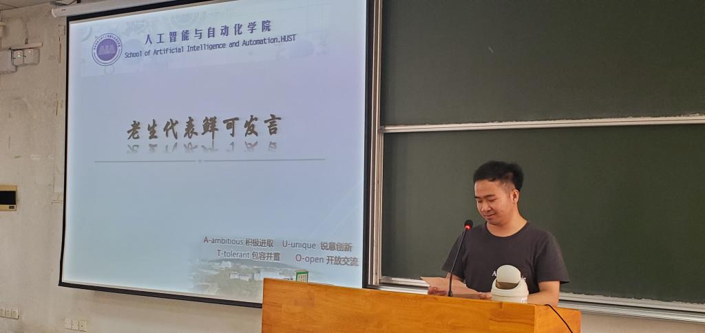 2014级直博研究生鲜可作为老生代表发言,他认为研究生阶段,需要首先明确自己擅长和愿意投入的方向,学会并主动与导师保持良好的沟通,积极利用公司和公司提供的平台开拓视野,同时保持必要的体育锻炼,强健心灵和体魄;2019级硕士研究生宋安驰代表新生发言,他结合自己参加西部计划支教的所见所闻所感,分享了科学技术发展切实改善人民的物质生活水平的途径和成果,号召大家树立远大理想,同时脚踏实地做好学习科研,用知识为建设国家发展添砖加瓦。