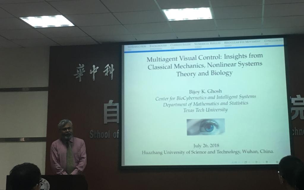 7月26日上午,德克萨斯理工大学(Texas Tech University)Bijoy K. Ghosh教授应袁烨教授邀请来公司进行学术交流,并作了题为“Multi-agent Visual Control: Insights from Classical Mechanics, Nonlinear Systems theory and Biology”的学术报告。 报告会由袁烨教授主持,公司30多位师生参加了此报告会。