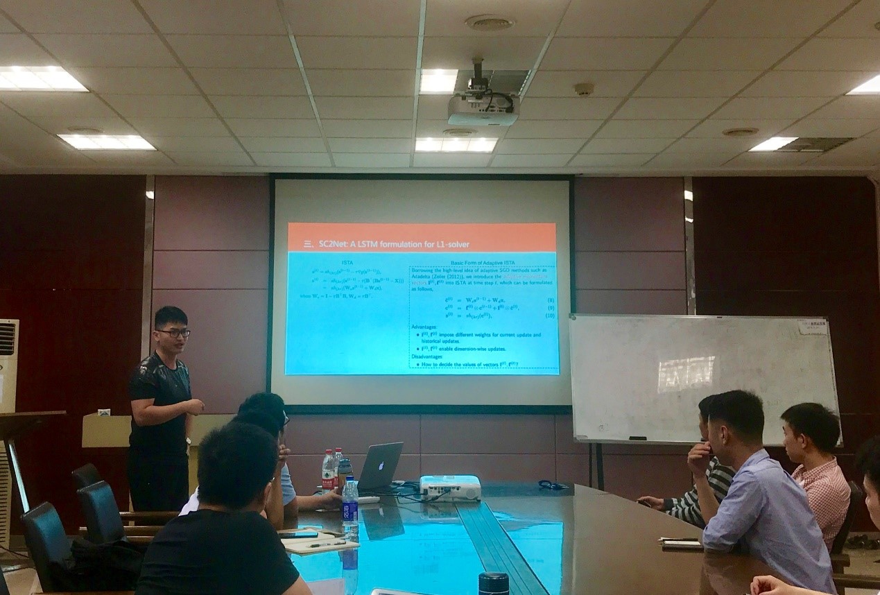 近年来,随着互联网和监控视频内容信息的海量涌现以及视频应用场景的拓展与深入,视频信息理解与深度解析业已经成为当今计算机视觉、多媒体和安防领域的重要研究方向之一。其中,针对视频图像序列的特征提取和异常事件检测识别已经受到学术界和工业界越来越多的关注和研究。周天异研究员主要介绍一种基于深度学习的动态图特征提取方法和异常点检测神经网络方法。结合上述两个方法的优势,周天异研究员及所属团队所提出的研究方案在异常事件检测测试集上取得了很好的效果。除此之外,周天异研究员还详细介绍了在当前学术界引起广泛关注的“数据可微编程”概念,及其在大数据优化处理与模式挖掘方面的应用前景,它也可以看作是在后深度学习时代,机器学习领域一个非常重要的研究方向,与现有的深度学习模型相比,可微编程模型具有更好的解释性,物理意义更加明确。周天异研究员的报告精彩纷呈,会后交流环节也和同学们有很好的互动,与会师生获益良多。