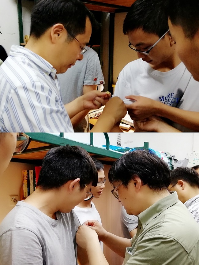 晚餐后,公司领导来到韵苑26栋看望毕业生。在自动化1404班宿舍,班长介绍了班级在大学期间课程学习、公益实践、科技创新、文化活动等成长历程,经过四年的磨砺,24名同学从入学时的青涩少年,到毕业时的9人录研5人出国深造率60%、就业率100%的满意答卷。在自动化1402班、自动化1406班、物流1402班等宿舍,院领导了解了员工的学习情况、生活情况以及毕业去向等,为毕业生佩戴上纪念校徽,表达了公司公司对同学们的深情牵挂和美好祝愿,希望同学们带着HUST烙印在新的征程上,展翅高飞,再创辉煌,以更优异的成绩回馈母校和社会。