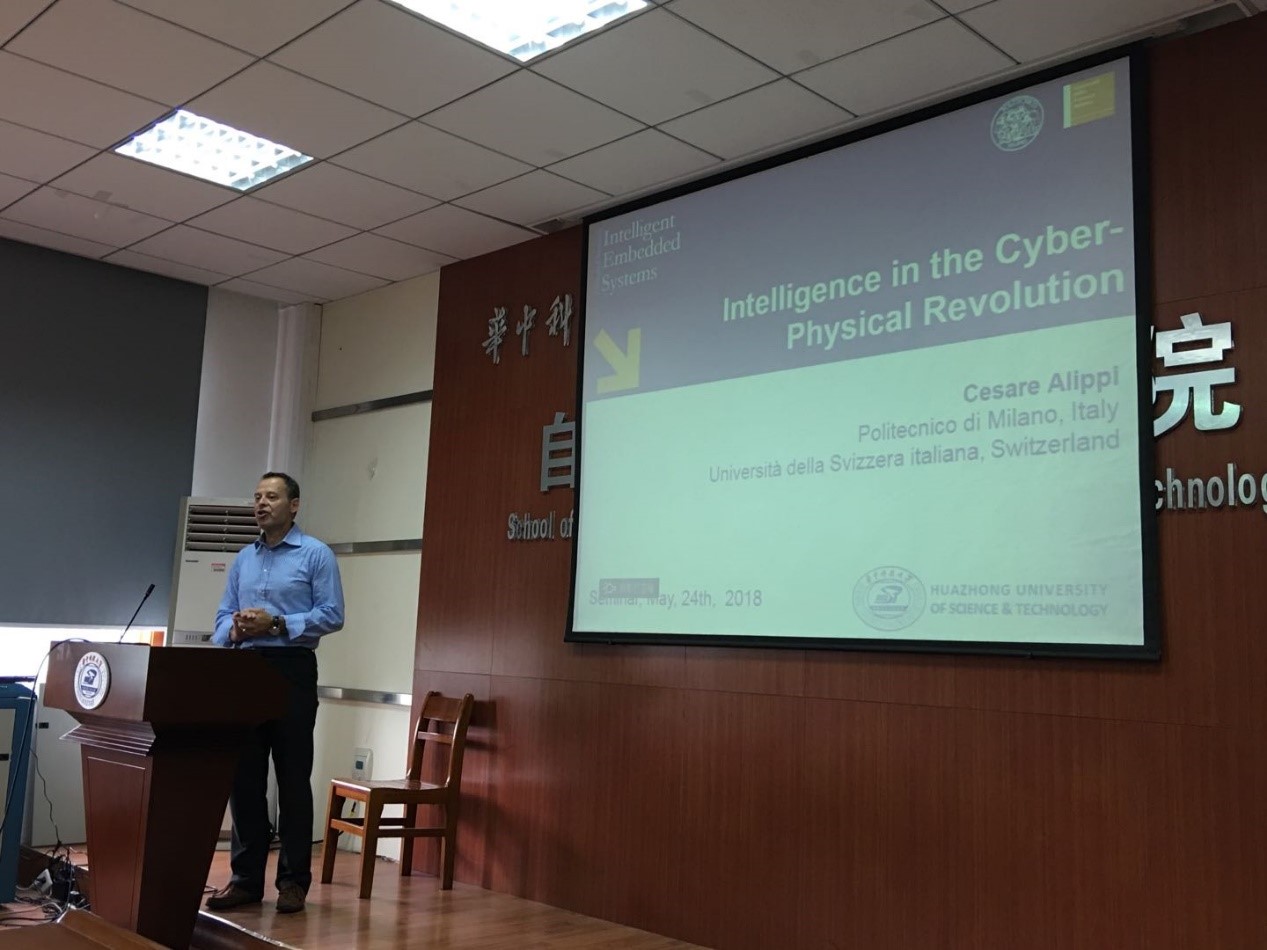 首先是Cesare Alippi教授带来题为“Intelligence in the cyber-physical revolution”的报告。Alippi教授于1990年获得电子工程学士学位,并于1995年获得意大利米兰理工大学的博士学位。现任意大利米兰理工大学信息处理系统和网络物理与嵌入式系统的全职教授。Alippi教授是IEEE会士,任IEEE计算智能学会教育副总裁,国际神经网络学会副主编,现任IEEE Transactions on Emerging topics in computational intelligence副主编,曾担任IEEE CIS等多个期刊副主席,同时还是英国伦敦大学、美国麻省理工公司、中国科公司等机构的客座研究员。