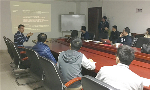 在报告中,Illés Farkas博士首先介绍了人类群体行为模式的研究动机和研究背景,随后基于人类社会中的实际现象,针对恐慌情况下的人群逃生行为提出了一种不协调运动模型。基于简单的物理原则,Illés Farkas博士从人流避障、大规模人群逃生方面模拟了人群在不同条件下面对恐慌时的逃生行为,同时也指出了在两种不同前提条件下,不协调运动模型产生了差异化结果。报告最后,Illés Farkas博士展示了计算机模拟实际场景中人群逃脱的动态过程,给公司师生留下了非常深刻的印象。